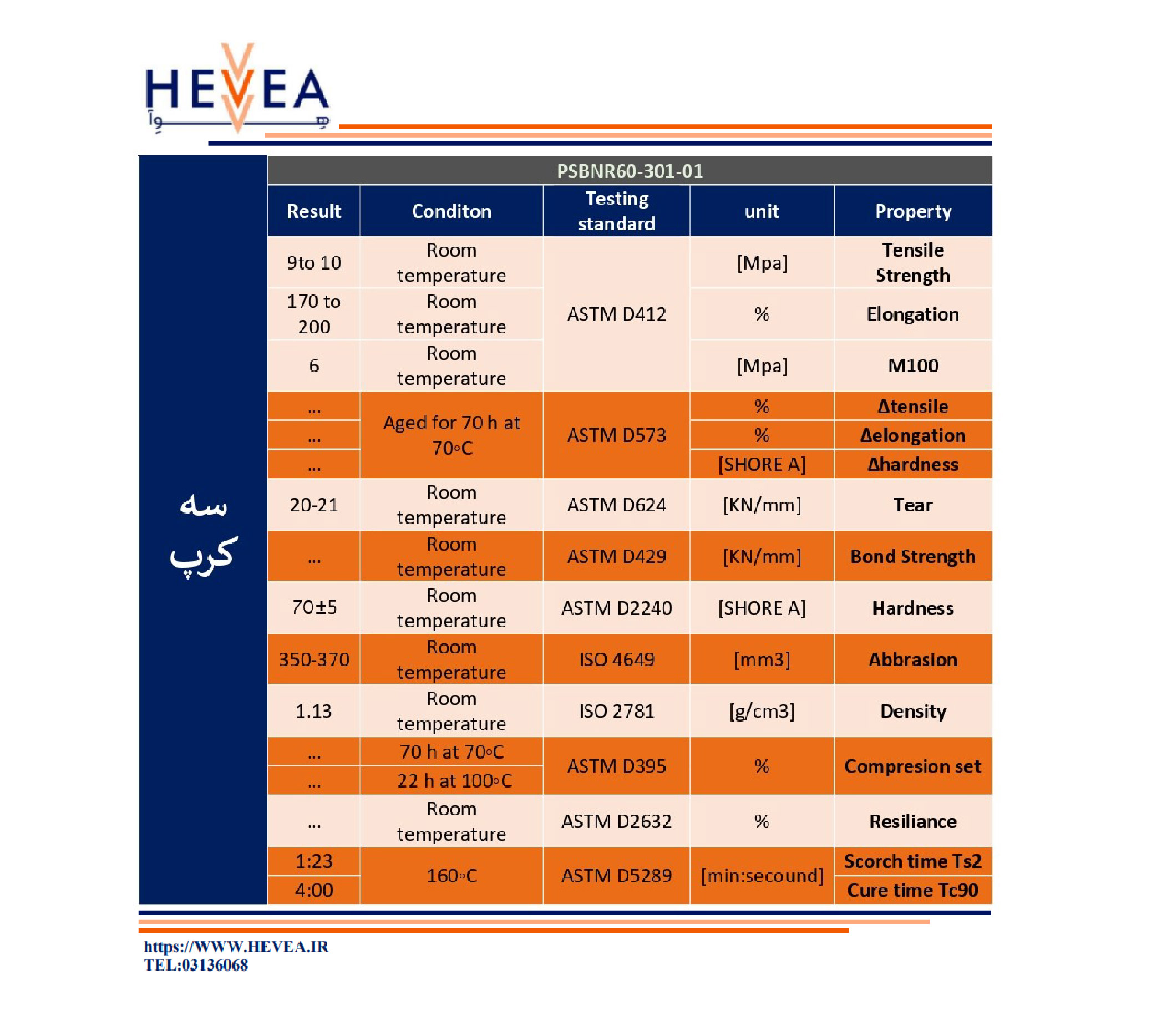 کامپاند SBR-NR-PBR سختی ۶۰ کد: PSBNR۶۰-۳۰۱-۰۱ کامپاند با پایه لاستیک SBR-NR-PBR و سختی SHORE A ۶۰±۵ :